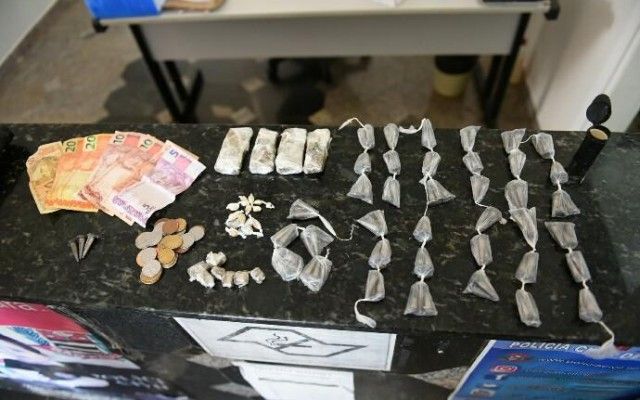 Durante buscas pessoais realizadas junto ao indivíduo, certa quantia em dinheiro bem como maconha e cocaína foram localizadas, onde em diligências nas proximidades do local da abordagem, os PMs encontraram mais certa quantia das mesmas drogas, além de diversas pedras de crack em embalagens plásticas, prontas para a comercialização.