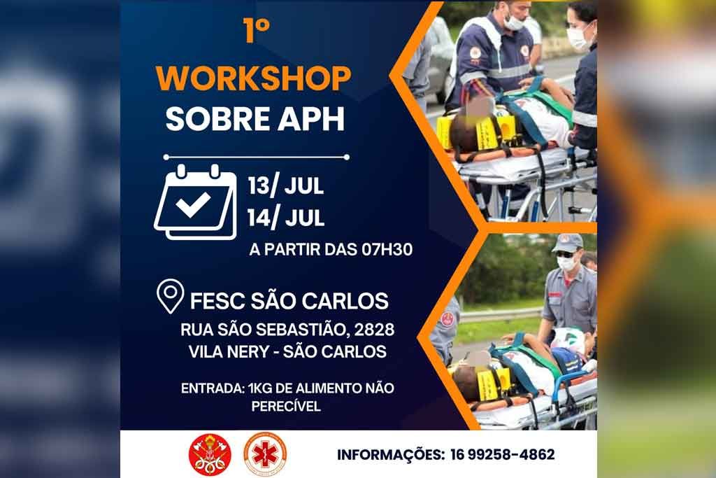No próximo fim de semana, sábado (13/07) e domingo (14/07), a partir das 8h, na Fundação Educacional São Carlos (FESC), localizada na rua São Sebastião, nº 2.828, na Vila Nery, será realizado em São Carlos o 1º Workshop sobre APH entre Corpo de Bombeiros Militar, Concessionárias e Serviço de Atendimento Móvel de Urgência – SAMU 192.