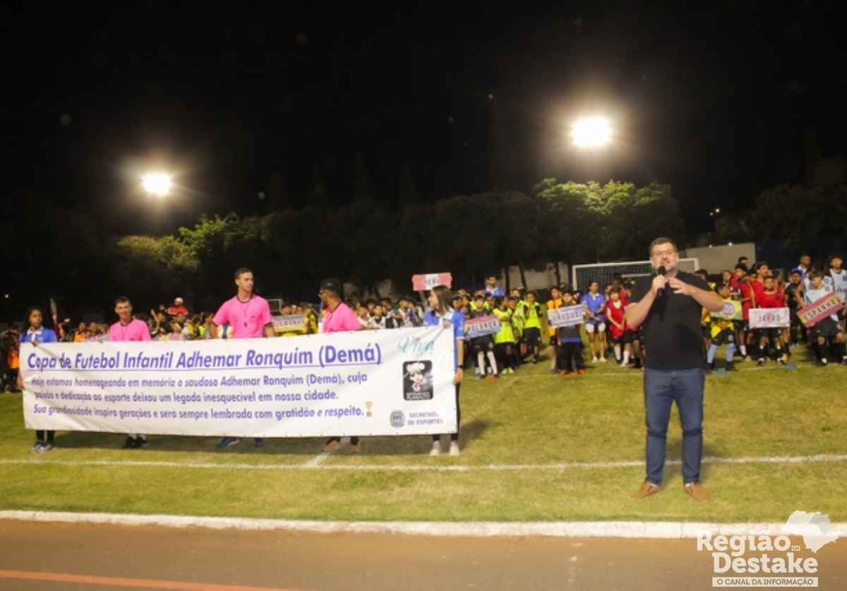 A abertura da Copa de Futebol Adhemar Ronquim (Demá), realizada na noite desta segunda-feira (18), no Estádio Municipal Dagnino Rossi, foi marcada por emoção e grande participação da comunidade esportiva de Ibaté. A competição presta homenagem a Adhemar Ronquim, esportista ibateense que dedicou sua vida a incentivar a prática do futebol na cidade.