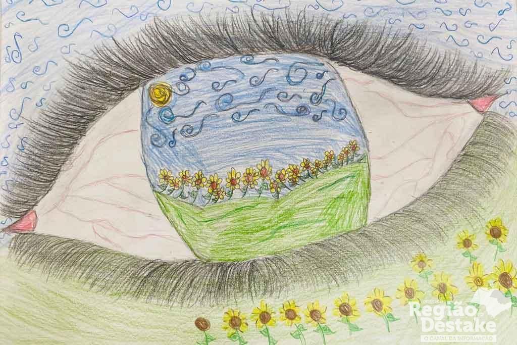 Maria Vitória (6ºA), Richard e Erick (8ºB), Luíza, João Pedro e Nicole, todos do 9º ano do Ensino Fundamental II, participaram da 3ª edição do Campeonato Artístico Literário do #CasaLibras, orientados pela professora Sabrina Maria de Amorim Cavequia, ganharam em 1º lugar com o desenho de releitura da obra “Campo dos Girassóis”, de Van Gogh, utilizando a versão sinalizada pelo poeta surdo Cacau Mourão. A releitura mostra um campo de girassóis que se alegra ao ser iluminado pelas mãos que fazem o sinal em Libras.