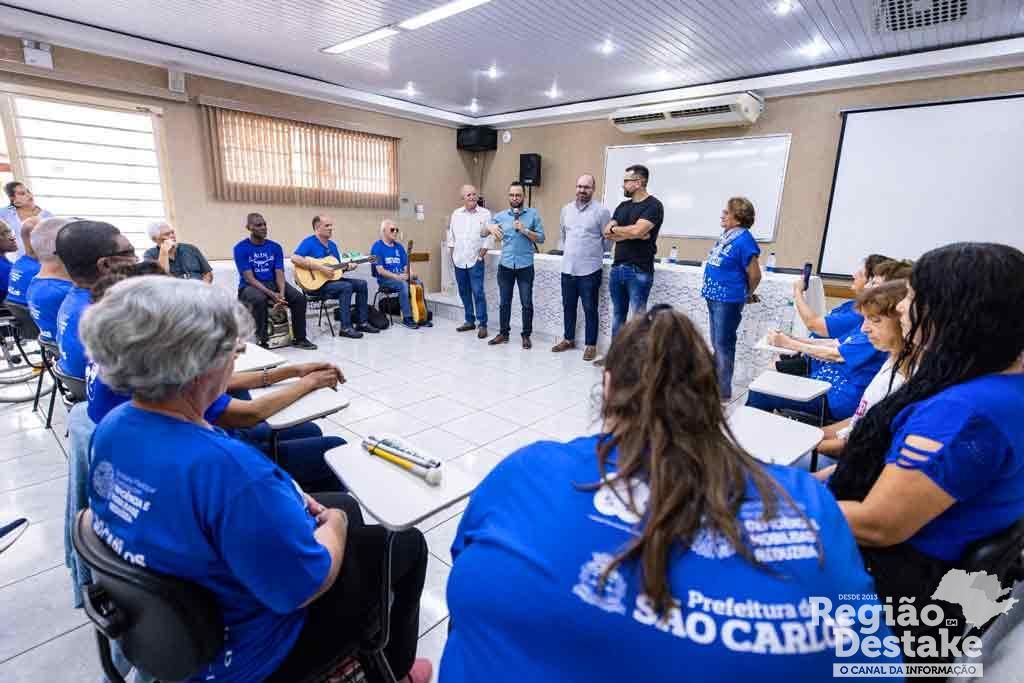 Na tarde desta segunda-feira (28), o prefeito de São Carlos, Netto Donato, acompanhou de perto o ensaio do coral “Além do Olhar”, composto por pessoas com deficiência visual. A atividade aconteceu na sede da Fundação Educacional de São Carlos (FESC) e foi marcada por emoção e reconhecimento.