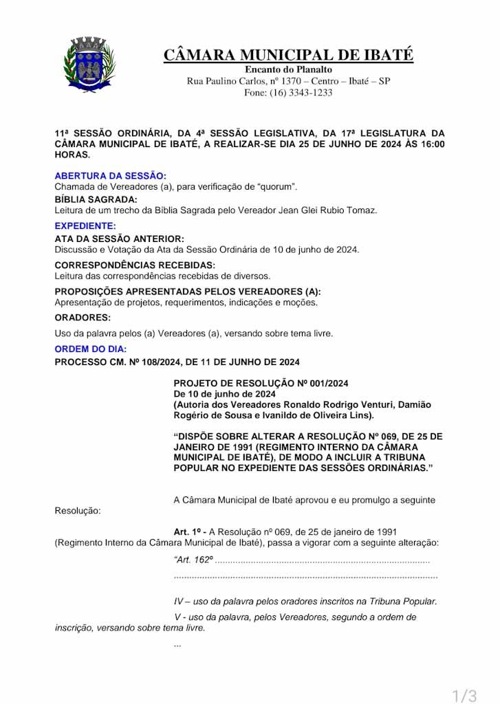 • CÂMARA INFORMA: Pauta da sessão ordinária de terça-feira, 25 de junho