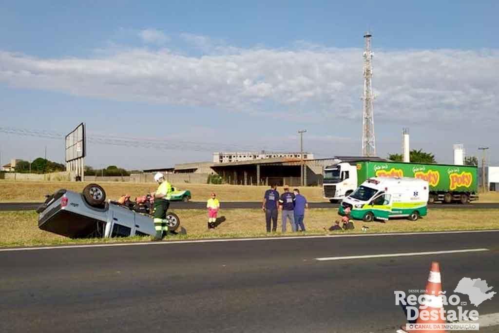 Um S10 com quatro pessoas capotou na manhã desta segunda-feira, 8, no km 240 da rodovia Washington Luís (SP-310), sentido interior/capital, na região do Jardim Embaré.