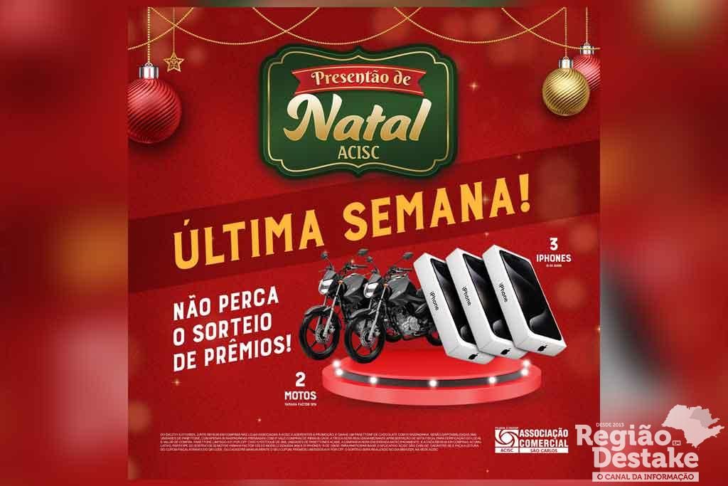 Ivone lembra que mesmo com o término da distribuição de panetones, a campanha segue ativa com o sorteio de grandes prêmios. Os consumidores ainda podem cadastrar seus cupons fiscais no aplicativo ACISC São Carlos para concorrer a: 02 motos Yamaha Factor 125i 0km e 3 iPhones 15 de 128GB. O sorteio será realizado no dia 08 de janeiro de 2025, às 10h, na sede da ACISC, com transmissão ao vivo pelas redes sociais da entidade.
