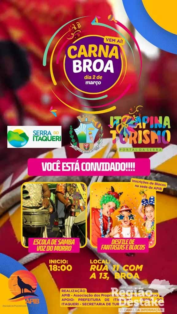 Com realização da APIB e apoio da Prefeitura de Itirapina, Serra do Itaqueri e Secretaria de Turismo e Meio Ambiente, o Carnabroa 2025 promete reunir famílias e amigos para uma noite inesquecível.