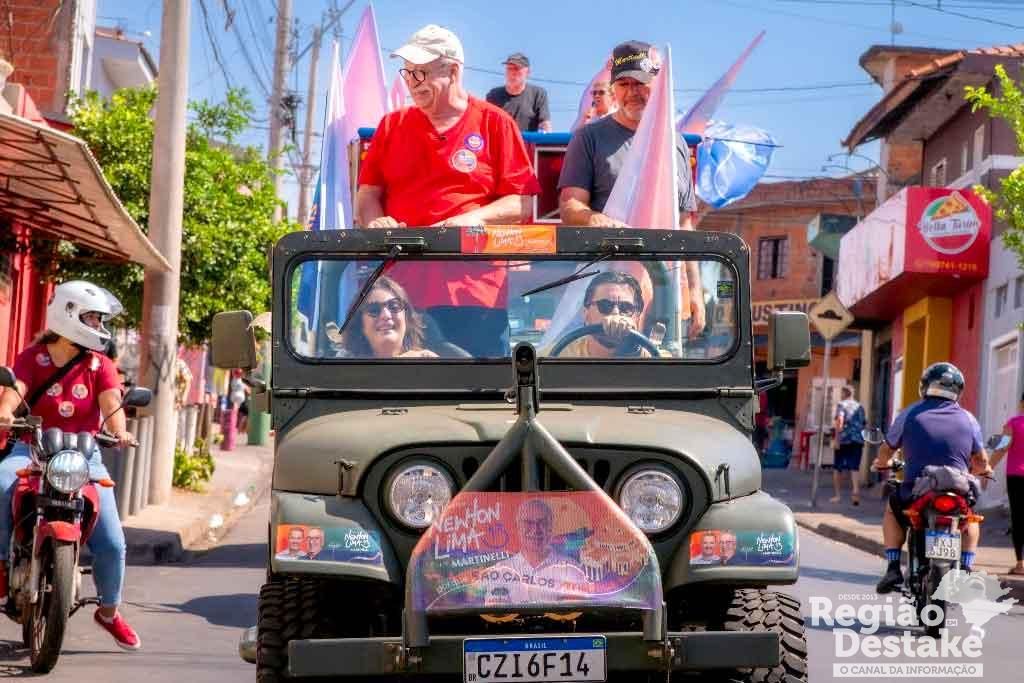 A carreata da Coligação “São Carlos Merece o Melhor” (PT, PC do B, PV, PSD, PSB, PSol e União Brasil), capitaneada pelo candidato a prefeito, Newton Lima (PT) e seu vice Marcos Martinelli (PSD), contou com a adesão de mais de 150 veículos e recepção calorosa dos moradores dos bairros Eduardo Abdelnur, Zavaglia, Antenor Garcia, Presidente Collor e Cidade Aracy, na manhã deste domingo (1º).