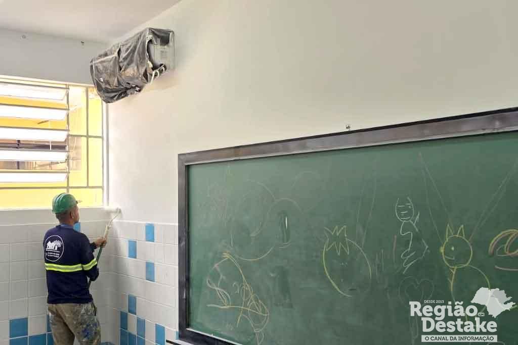 A escola está recebendo várias intervenções entre elas de alvenaria, pintura, na rede elétrica e hidráulica. Estão sendo executados serviços de restauração no reboco da parte externa e interna, pintura interna e externa, instalação elétrica, revisão hidráulica, instalação de forro com manta térmica, revisão e recuperação do telhado, troca de 17 portas e serviço de serralheria.