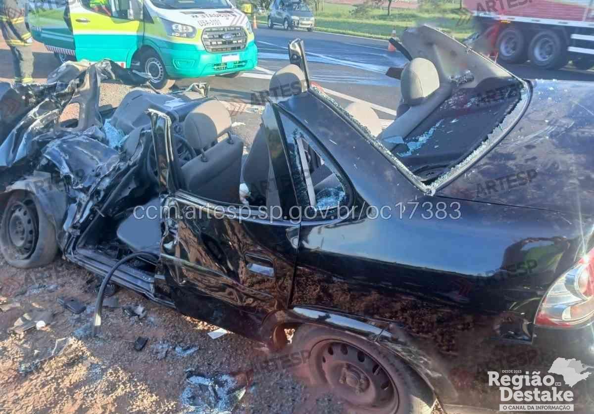O impacto foi tão forte que o motorista do carro morreu após ser retirada do carro e ser socorrida.