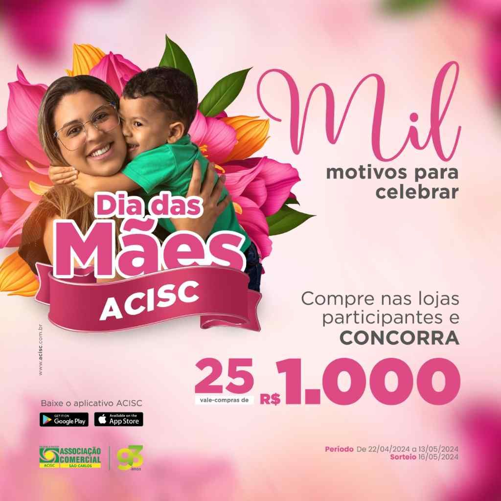A promoção “Mil Motivos para Celebrar”, da Associação Comercial e Industrial de São Carlos (ACISC), visa homenagear todas as mães da cidade, além de ajudar a fomentar as vendas no comércio local.