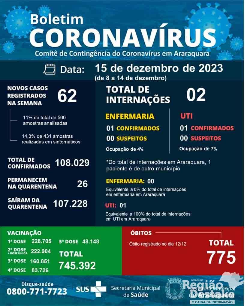 Portanto, Araraquara soma 108.029 casos confirmados de Covid-19.
