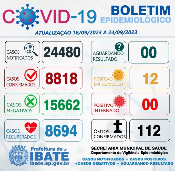 A Secretaria Municipal de Saúde de Ibaté, através da Vigilância Epidemiológica e do Gabinete de Prevenção e Monitoramento do Coronavírus, divulgou o Boletim Epidemiológico sobre a situação da Covid-19, no município.