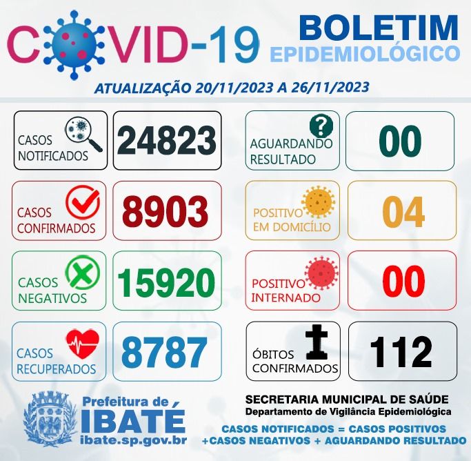 A Secretaria Municipal de Saúde de Ibaté, através da Vigilância Epidemiológica e do Gabinete de Prevenção e Monitoramento do Coronavírus, divulgou o Boletim Epidemiológico sobre a situação da Covid-19, no município.
