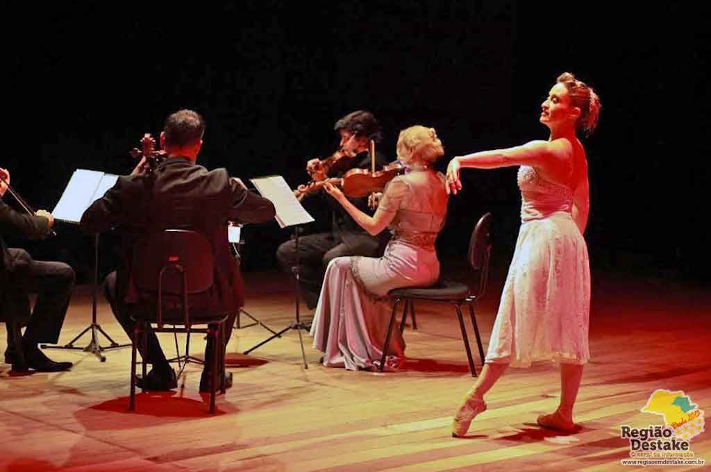 O Quarteto de Cordas, composto por músicos da OSESP (Orquestra Sinfônica do Estado de São Paulo), encantou a plateia que reuniu mais de 400 pessoas, excedendo a capacidade máxima. O espetáculo teve início com músicas eruditas, partindo, em um segundo momento, para um show, segundo o líder do Quarteto, o organizador do grupo, Paulo Paschoal. De uma maneira muito descontraída, conduziu a plateia, informando alguns detalhes sobre a sequência do espetáculo, que teve início com músicas eruditas. Dentre os objetivos, apresentar para o público (composto inclusive por crianças) a música erudita e alguns clássicos que encantam concertos no mundo todo. Nesse momento houve a participação especial da bailarina são-carlense, Ana Carolina Chieppe, que integra os artistas do Balé Expressão, escola que muito colaborou para a realização do evento. Era o momento de cada espectador acessar o seu “eu” interior, “sentir a música”, permitindo relembrar memórias, exaltando seu lado reflexivo.