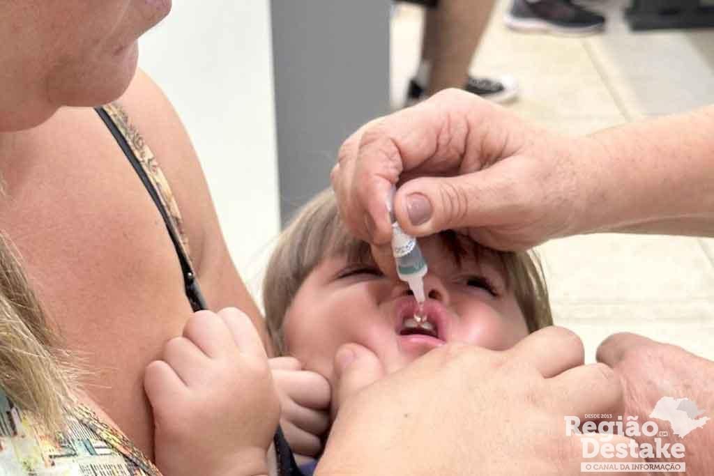 Foi aplicada a vacina oral (gotinha) contra a poliomielite em crianças de 1 ano a menores de 5 anos de idade. Foram 269 doses em crianças de até 1 ano, 312 doses para crianças com 2 anos, 377 doses para 3 anos e 290 doses para crianças com 4 anos.