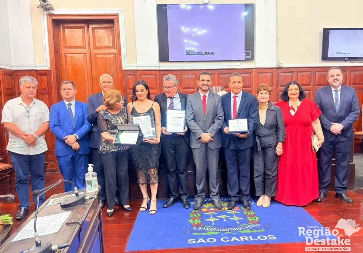 A Câmara Municipal de São Carlos realizou, na noite desta sexta-feira (3), uma Sessão Solene em homenagem a Lindomar José Borges, que recebeu o título de Cidadão Honorário de São Carlos. A iniciativa foi proposta pelo vereador Edson Ferraz, em reconhecimento à trajetória de dedicação, empreendedorismo e contribuição de Lindomar ao desenvolvimento econômico e social do município.