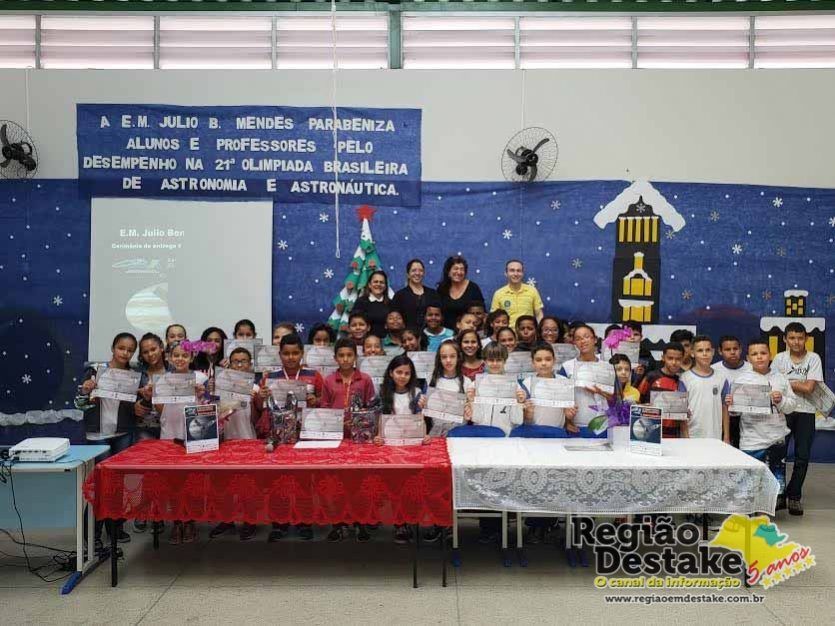 A Escola Municipal “Julio Benedicto Mendes”, de Ibaté, participou no mês de maio da 21ª Olimpíada Brasileira de Astronomia e Astronáutica (OBA), uma competição que acontece anualmente e no ano de 2018 foi aplicada em 13 mil unidades de ensino para alunos dos Ensinos Fundamental e Médio de todo o Brasil, e teve dois alunos premiados.