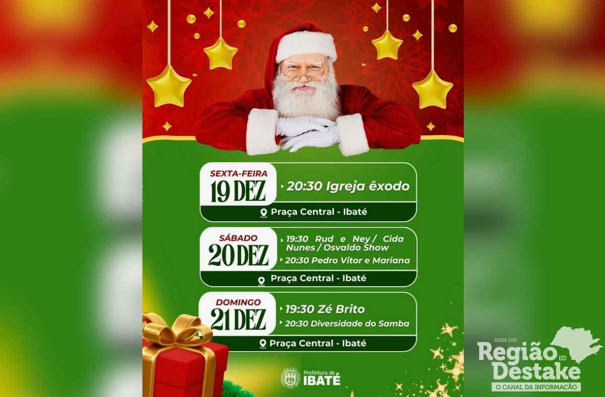 A programação do Encantos de Natal 2025 segue movimentando a Praça Central de Ibaté, reunindo moradores e visitantes em noites de lazer, cultura e confraternização. Com atrações voltadas a diferentes públicos, o evento reforça o clima natalino e abre espaço para artistas locais e regionais.
