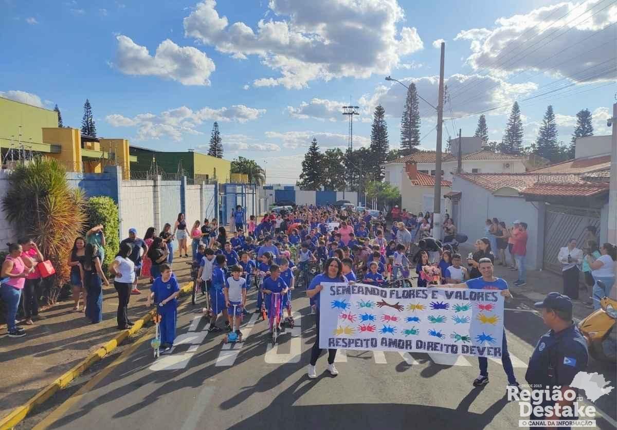 A Escola Municipal Profª Neusa Milori Freddi realizou, nesta semana, uma passeata especial para celebrar a chegada da primavera, iniciada oficialmente no Brasil no dia 22 de setembro, às 15h19, com o equinócio. O evento reuniu estudantes, familiares e colaboradores em um trajeto pela região central da cidade, feito de bicicleta, patinete e também a pé.