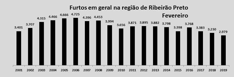 O indicador de furtos em geral teve redução de 7,8% – de 3.230 para 2.979, ou seja, 251 a menos. É a menor quantidade de toda a série.