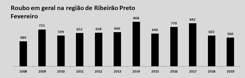 A região de Ribeirão Preto reduziu as ocorrências de homicídios e os casos e vítimas de latrocínio no mês de fevereiro.