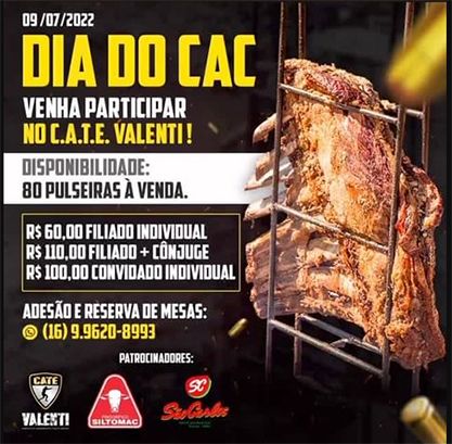 O C.A.T.E. Valenti vai reunir no próximo sábado, dia 9 de julho, a partir das 12h, os Caçadores, Atiradores Desportivos e Colecionadores, para comemorar, pela primeira vez em São Carlos, o Dia Municipal do CAC.