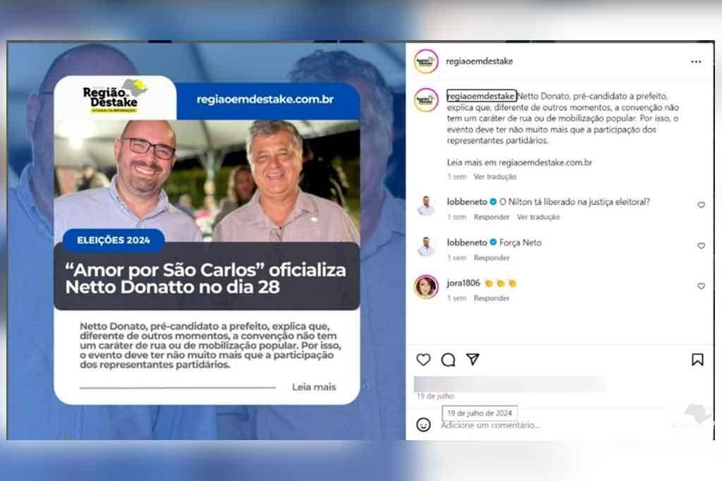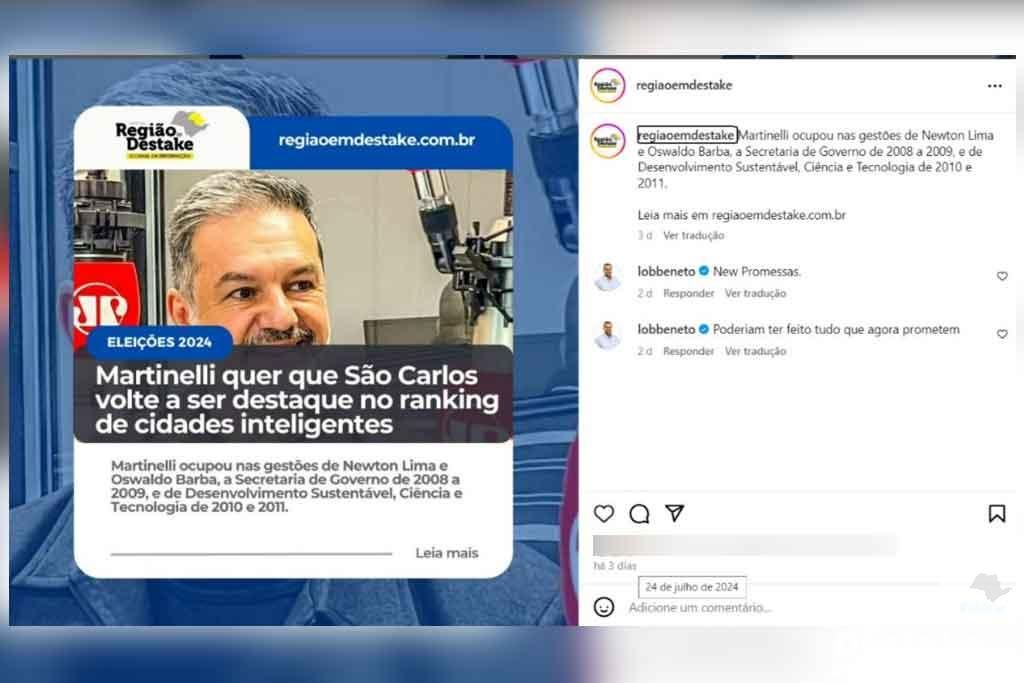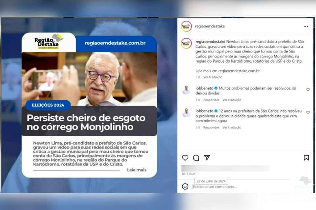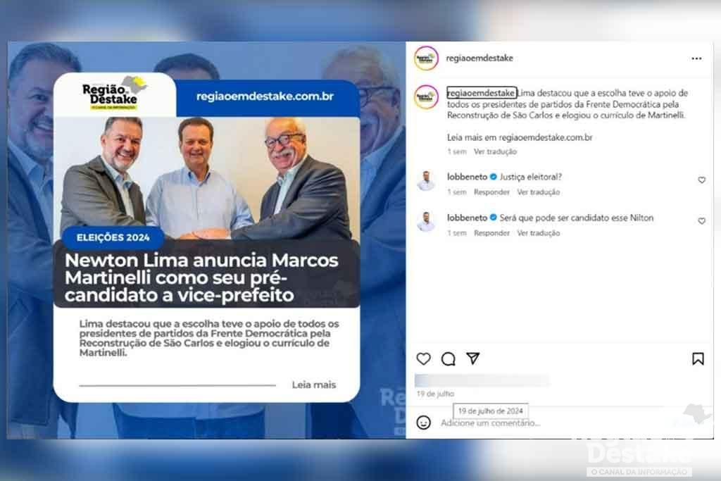 O ex-deputado federal Lobbe Neto tem realizado comentários contundentes no Instagram do portal Região em Destake, lançando críticas ao ex-prefeito de São Carlos, Newton Lima, que é pré-candidato a prefeito nas Eleições Municipais deste ano.