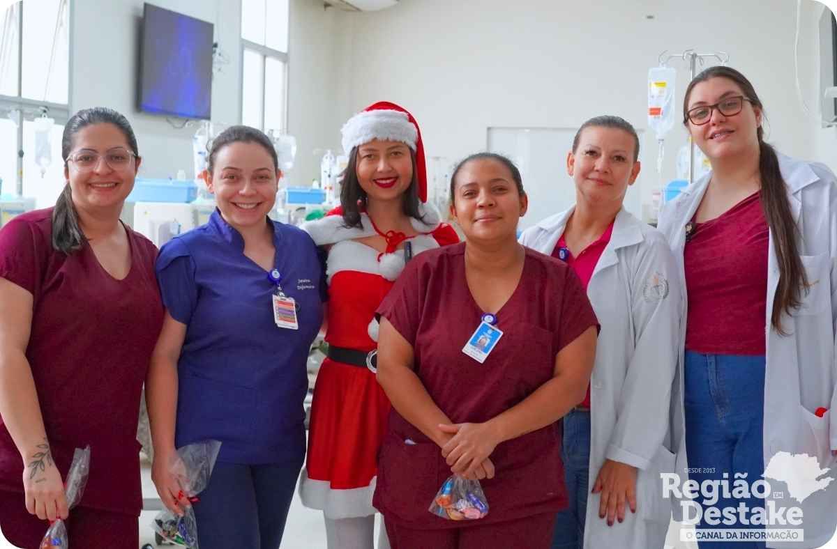 A Nefrologia da Santa Casa de São Carlos viveu nesta semana um momento de emoção e acolhimento. A ex-paciente Ana Carolina Monteiro, que passou por dois transplantes de rins e quase dois anos de hemodiálise na instituição, retornou ao setor vestida de Mamãe Noel para distribuir panetones e chocolates aos pacientes em tratamento. A iniciativa, marcada por gestos simples e simbólicos, levou mensagens de carinho, esperança e empatia.