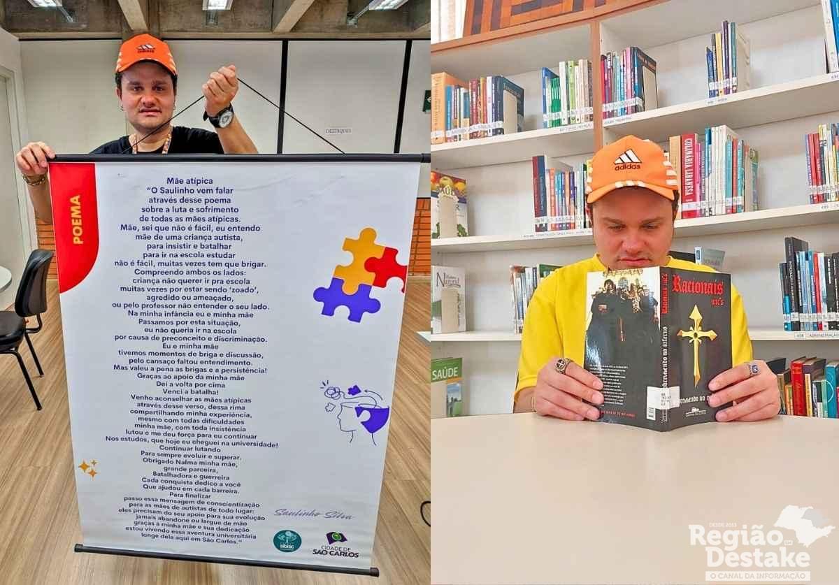 A cidade de São Carlos recebe, a partir da próxima quarta-feira (22 de outubro), a exposição “Trajetória e poemas: Saulinho Silva e os poemas para inclusão”, que será inaugurada às 10h30, na Biblioteca Euclides da Cunha, localizada na Vila Prado. O evento apresenta os trabalhos do poeta Saulo Silva, conhecido como Saulinho, jovem autista e estudante de Educação Especial na UFSCar, cuja trajetória tem inspirado educadores e leitores pela força da sensibilidade e da superação.