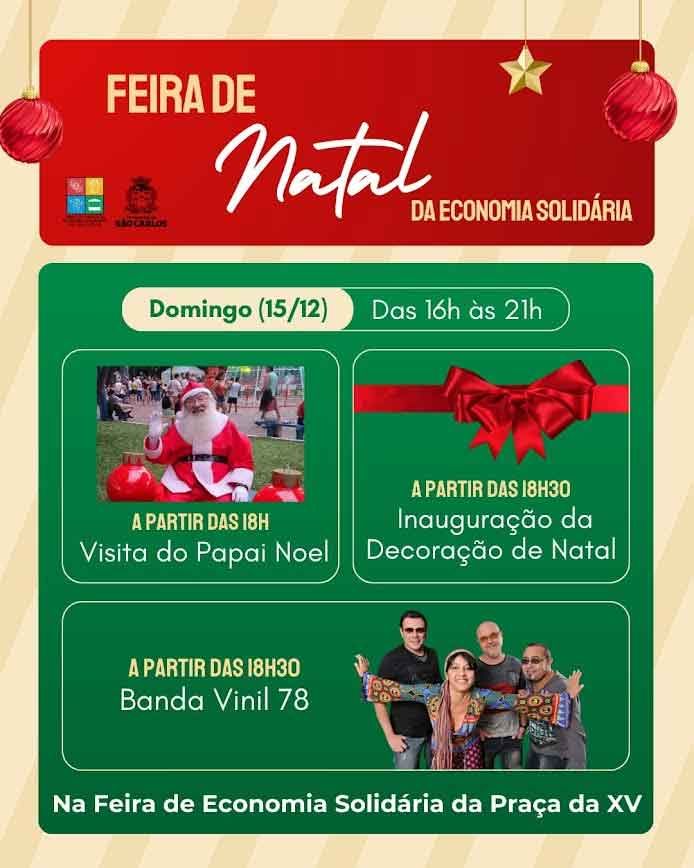 A magia do Natal chega à Praça XV em São Carlos no próximo domingo, 15 de dezembro. A tradicional Feira de Economia Solidária promoverá um evento especial para inaugurar sua decoração de luzes natalinas, proporcionando momentos de alegria e celebração para toda a comunidade.