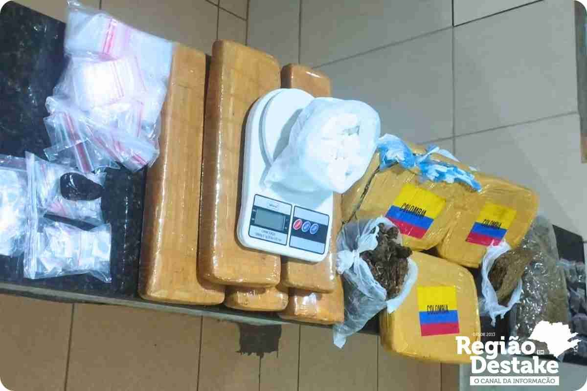 Diante da informação, a equipe realizou vistoria na residência, onde localizou os entorpecentes em um dos quartos. Foram apreendidos mais de oito quilos de maconha, porções de “ice” e cocaína, além de uma balança de precisão e diversos apetrechos utilizados para o fracionamento e embalo das drogas.