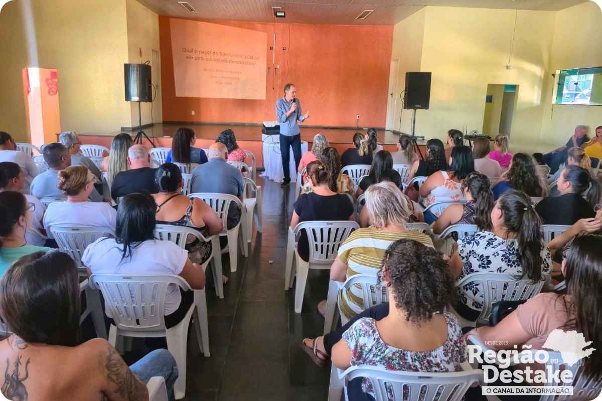 A formação também contou com uma dinâmica conduzida pelo professor Deivide dos Santos Pedro, integrante da rede municipal de ensino, que promoveu interação e engajamento entre os participantes de forma leve e participativa. A proposta foi estimular o envolvimento dos profissionais e reforçar o papel de cada um no ambiente escolar.