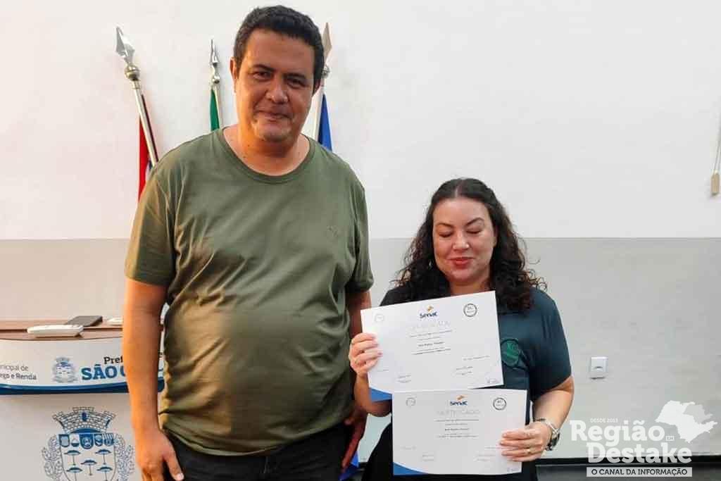 Na manhã desta terça-feira (25/03), o auditório da Casa do Trabalhador, em São Carlos, foi palco da entrega de certificados de conclusão de dois cursos de capacitação promovidos pela RC Serviços e Terceirização, empresa que presta serviços à Prefeitura Municipal. A iniciativa, realizada em parceria com o Senac, ofereceu os cursos de Atendimento ao Cliente e Língua Brasileira de Sinais (Libras) a todos os funcionários da RC, totalizando 40 horas de formação gratuita.