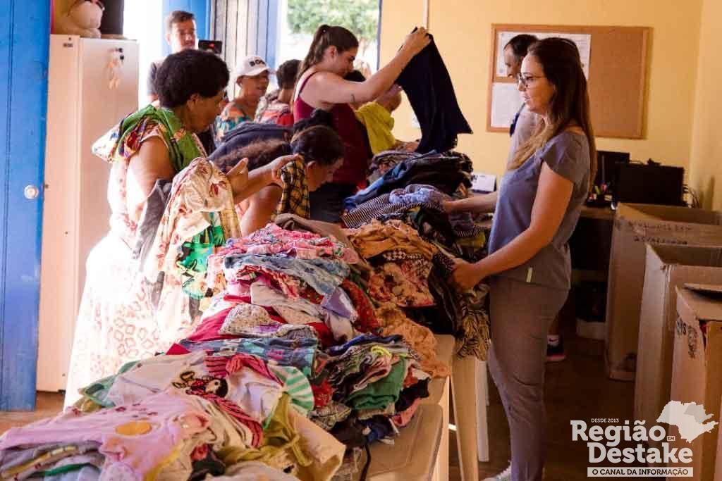 A “lojinha” montada na Casa Amarela, sede do Fundo Social em Santa Eudóxia, ofereceu aos moradores a oportunidade de escolher entre as peças doadas, como roupas, calçados, bolsas e itens de cama, mesa e banho.