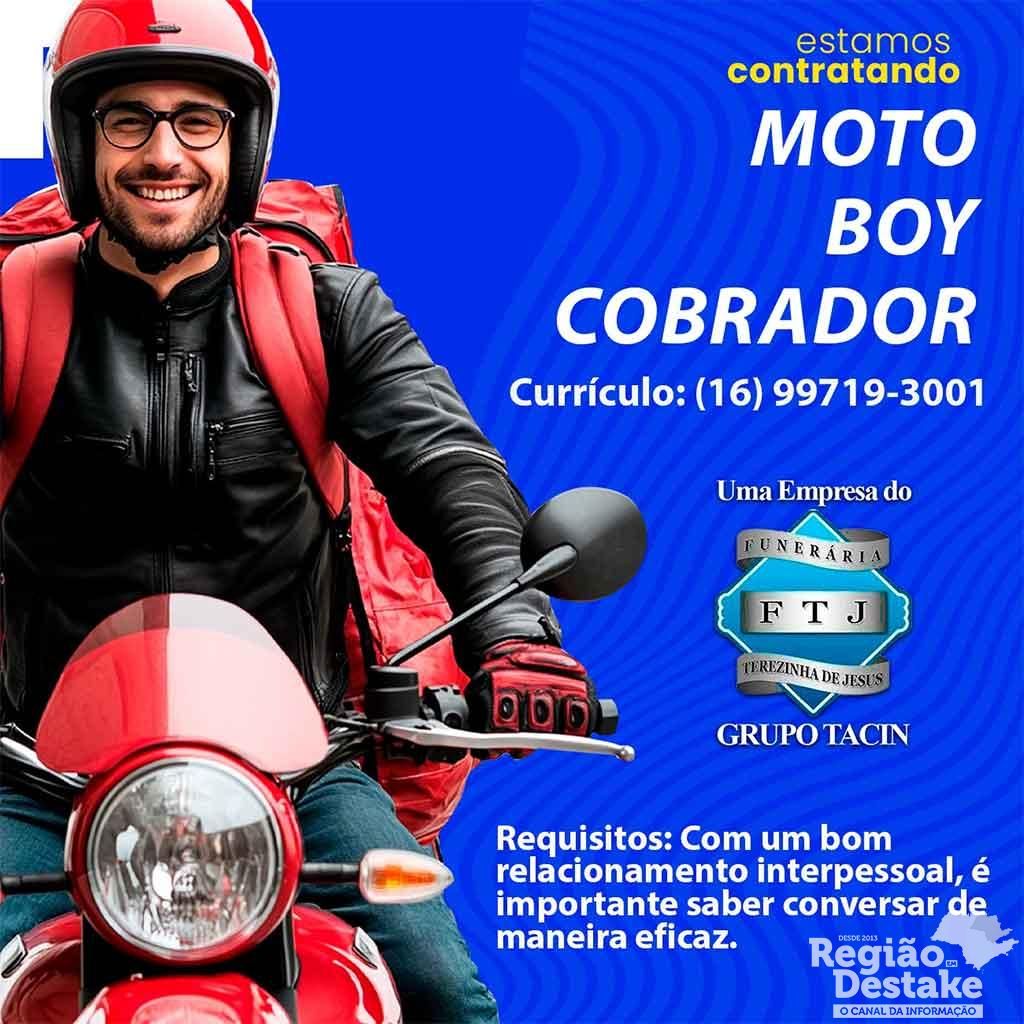 A Funerária Terezinha de Jesus, do Grupo Tacin, está com oportunidade de emprego aberta para a função de motoboy cobrador. Os interessados devem enviar currículo para o número (16) 99719-3001.