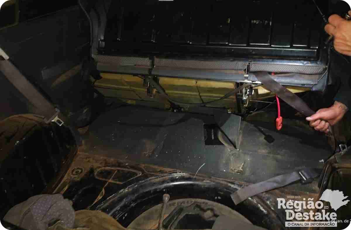 Na fiscalização veicular, os guardas confirmaram que a placa era artesanal e constataram ainda que a numeração identificadora dos vidros estava suprimida, reforçando a suspeita de que o veículo fosse produto de furto ou roubo. Em buscas mais detalhadas, a numeração do chassi foi localizada sob o banco traseiro, sem sinais de adulteração.