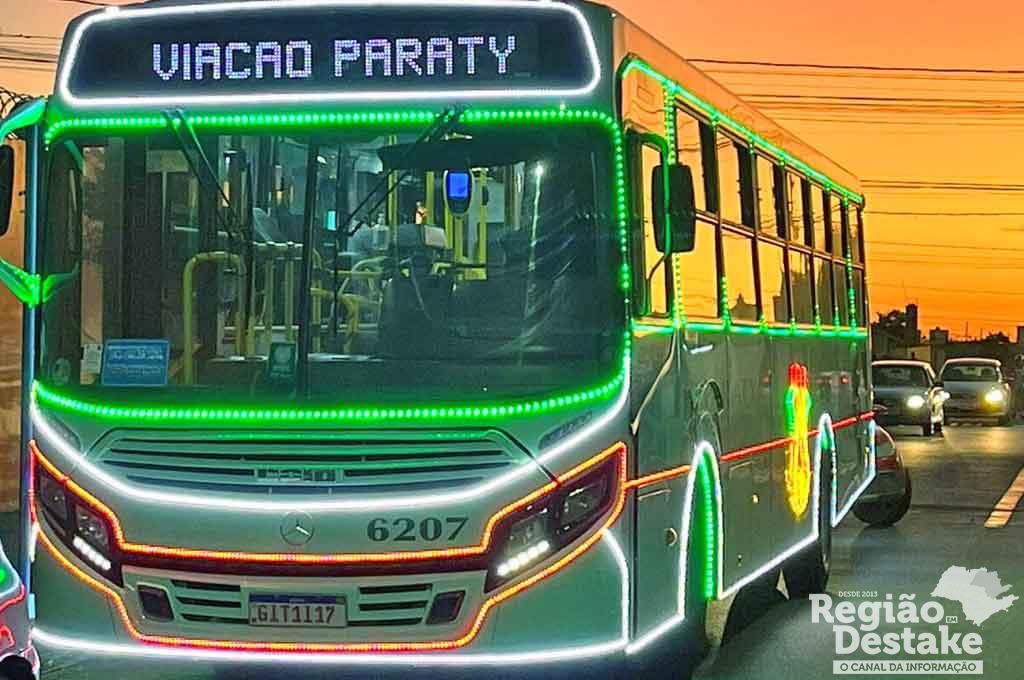 Para esta quarta-feira, 20/12, a Paraty irá realizar o 4º Bonde do Noel, ação em que um ônibus iluminado transporta o Papai Noel e seus ajudantes para a distribuição de balas.