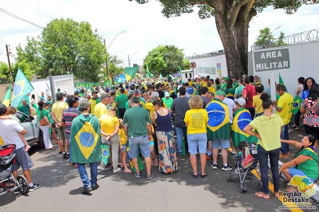 Centenas de pessoas se concentraram em frente ao quartel do Tiro de Guerra com as cores da bandeira brasileira