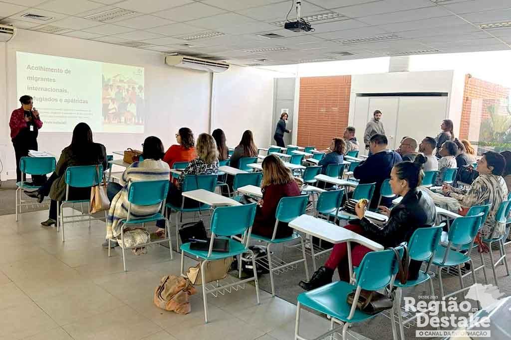 Os gestores e servidores da rede de assistência da Secretaria Municipal de Cidadania e Assistência Social participaram nesta quarta-feira (31/07), no auditório do Centro de Formação dos Profissionais da Educação (CEFPE) de uma formação profissional com a temática “Migrantes Estrangeiros”, ministrada pela professora Ana Paula Gabatelli Vieira, mestre em Linguística Aplicada e coordenadora executiva da ONG Vila Internacional.