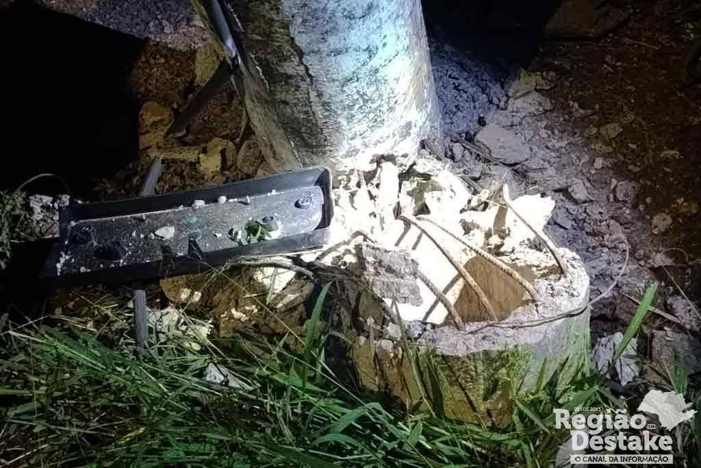 Segundo a Guarda Municipal, equipes realizavam patrulhamento pela Rua Francisco Possa quando foram alertadas por moradores sobre o acidente. No local, encontraram o poste inclinado e a placa dianteira de um veículo com identificação TJW0H34, que provavelmente se desprendeu no momento da colisão.
