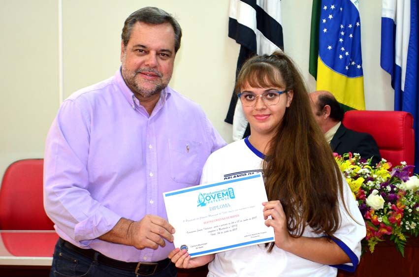 Representando o prefeito José Luiz Parella (PSDB), o vice-prefeito Horácio Sanchez (PSDB) parabenizou o ex-vereador Marinho pela idealização do projeto e saudou os jovens eleitos. “São cinco mulheres jovens contra quatro homens, ou seja, cada vez mais, as mulheres mostram o poder feminino e estão fazendo sucesso. Parabéns a todos vocês e que acompanhem de coração e com muito afinco os projetos. Que sejam felizes com suas escolhas e que Deus abençoe a todos”, comentou. “Em nome do nosso prefeito Zé Parrella, coloco-me à disposição de vocês para debatermos os assuntos importantes para a nossa cidade e tenham uma excelente semana de aprendizados e discussões”, completou.