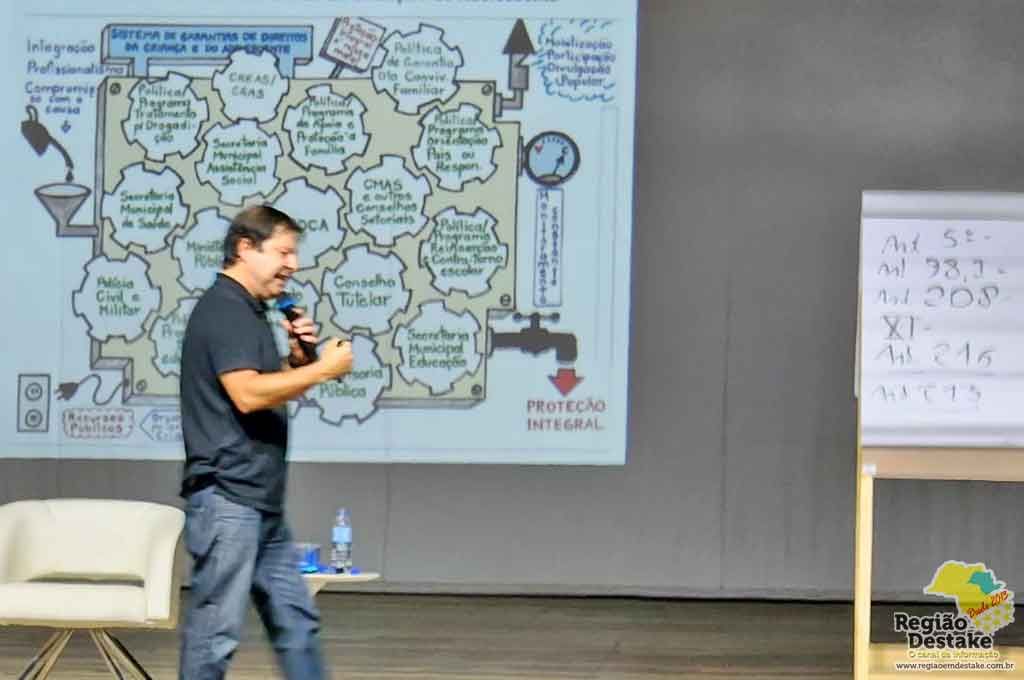 Em sua palestra, o procurador relatou sobre a necessidade de ter uma rede articulada: “É preciso que a Assistência Social, Saúde, Educação, Cultura, Esporte, diversos setores trabalhando juntos, olhando cada caso com suas particularidades e garantindo a proteção integral. Somando esforços e conhecimentos, permite que se chegue antes do problema.