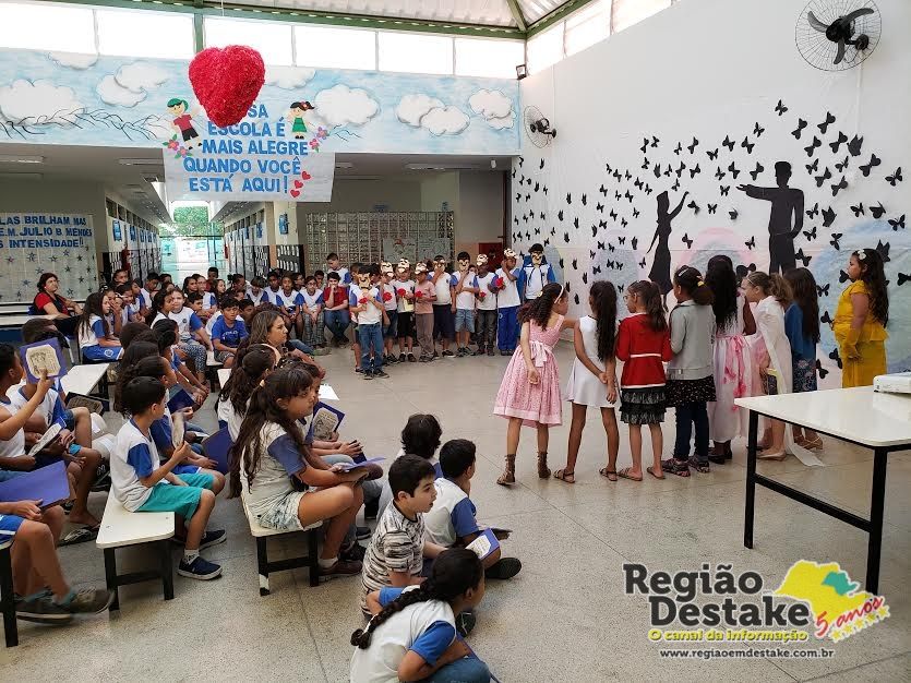 No período da manhã as turmas do 3º Ano A da professora Elizandra Aparecida Luiz e 3º Ano B da professora Joice Mendes Risso fizeram uma apresentação sobre o Folclore, finalizando as atividades que foram desenvolvidas sobre o tema no mês de agosto. Já no período da tarde os alunos da professora Daniela Graziela da Silva do 3º Ano C apresentaram o gênero literatura de cordel “O Coronel e o Lobisomem”, enquanto os alunos do 3º Ano D da professora Marlene Aparecida Aleixo fizeram uma apresentação do conto de fadas “A Bela e a Fera”.
