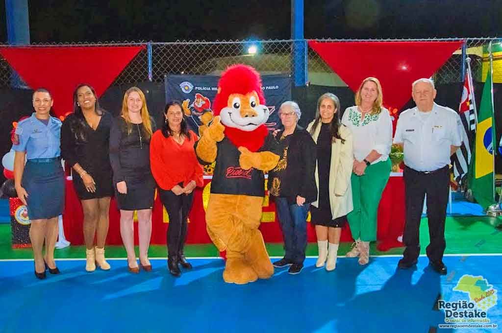 A cerimônia contou com a presença da secretária de Educação e Cultura, Danielle B. G. Chaves, Jarbas Antonio Valentim, Reverendíssimo Capelão da PM, a PM Cabo Vera Lígia Ferreira de Camargo, Instrutora Proerd, diretora da escola Brasilina Teixeira Ianoni, Tânia M. P. Durvra, professores, funcionários municipais, e de pais e familiares dos estudantes.