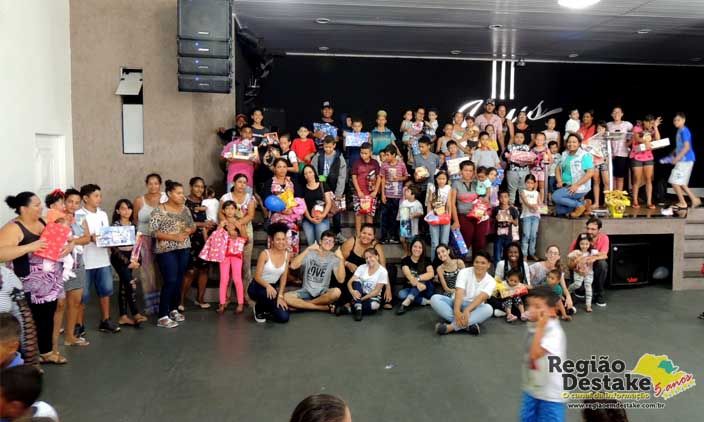 Dezenas de crianças receberam brinquedos, panetones e uma palavra de esperança e amor, ministrada pelo Pastor Célio.