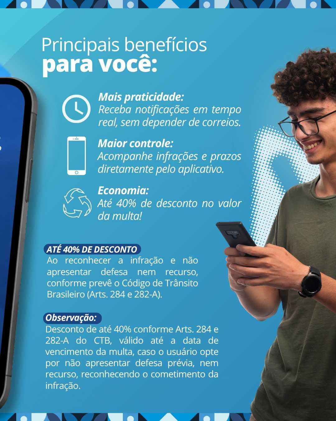 Entre os principais benefícios apontados pela administração municipal estão o recebimento das notificações em tempo real, sem depender dos Correios, e o acompanhamento mais eficiente das infrações e dos respectivos vencimentos. Além disso, o sistema oferece a possibilidade de até 40% de desconto no valor das multas para os motoristas que reconhecem a infração e optam por não apresentar defesa ou recurso, conforme previsto no Código de Trânsito Brasileiro.
