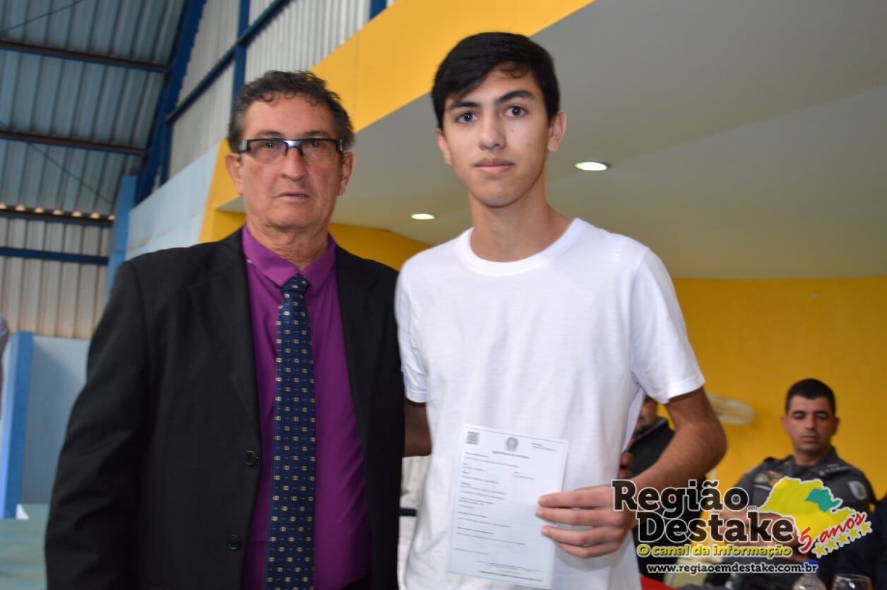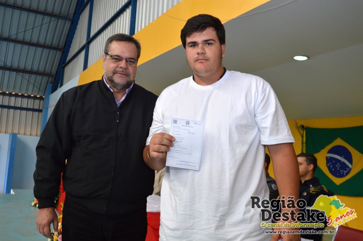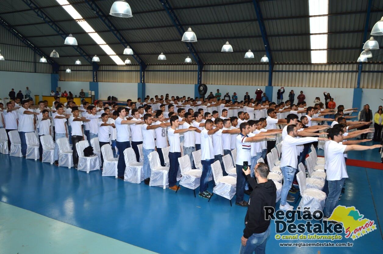 Na manhã desta quinta-feira (9), aconteceu a solenidade de Juramento a Bandeira, no Centro de Convivência da Melhor Idade, em Ibaté, onde aproximadamente 300 jovens da classe 2000 participaram do ato e receberam o Certificado de Dispensa de Incorporação (CDI), popularmente conhecido como “Reservista”.