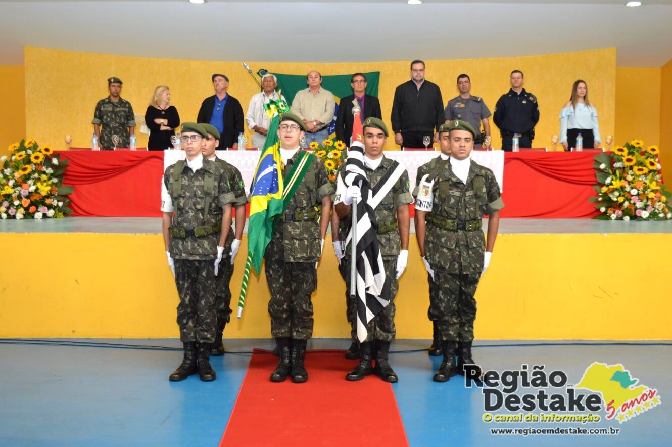 Representando o prefeito José Luiz Parella (PSDB), que é presidente da 46ª Junta de Serviço Militar (JSM), o vice-prefeito Horácio Carmo Sanchez (PSDB), falou da importância do juramento. “Fico lisonjeado de estar aqui diante desses jovens e um ato tão bonito como é o juramento a bandeira. Agora vocês, que são o futuro do nosso país, estão em um novo patamar da vida de vocês”, comentou.