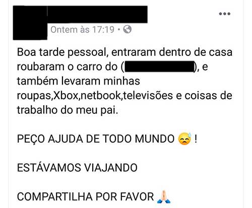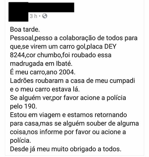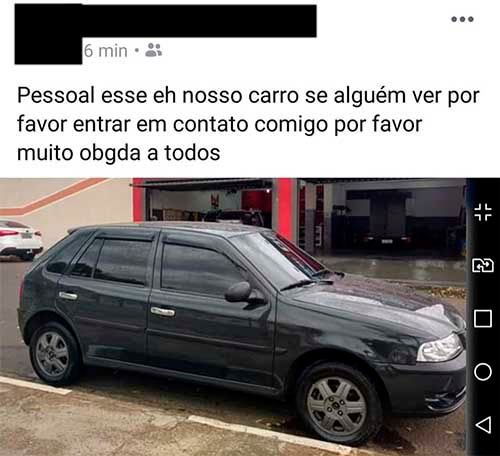 A família pede ajuda para quem tiver informações sobre o paradeiro do veículo e dos objetos, que entrem em contato, imediatamente, com a Polícia Militar, via 190.