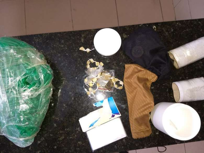 A PM se deslocou até a residência, também no Jardim Mariana, e durante diligência, além da câmera de segurança, localizaram 30 pedras de crack; 02 porções de maconha; 01 frasco plástico contendo um pó branco contendo 50 gramas; 01 faca, uma balança de precisão; sacos para embalagem de drogas; 1.115 eppendorfs vazios; e mais R$ 68,00 em dinheiro.