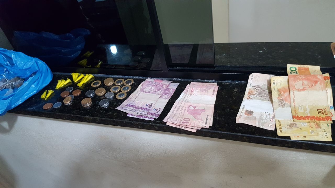 O índividuo tentou fugir, mas foi detido. Em busca pessoal, os policiais localizaram drogas e dinheiro da venda dos entorpecentes.